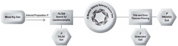 FLT is an instructive example since its history can be predictive. Despite diligent efforts on the part of professional and amateur mathematicians alike, it took over three centuries after Fermat [11] first introduced his so-called last theorem before a viable method of proof was published by Wiles [12]. Even then, there was a gap in the proof that was circumvented with the help of Taylor, as described in [10]. The proof is voluminous and involves complex and arcane arguments concerning modular elliptic curves. Clearly, the problem was that those who struggled for centuries to prove FLT did not know which axiom sets to use. We can expect the same problem to exist in the age of big data unless this problem is properly automated since big data will be used to infer (as opposed to imply) propositions that require multiple axiom sets and, thus, cannot be proved using the standard methods for automated theorem proving [13-18]. The algorithm for achieving this is depicted in Fig. 1.