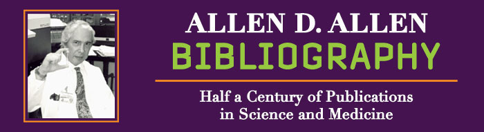 Allen AD, Tilkian SM: Depression correlated with cellular immunity in systemic immunodeficient Epstein-Barr virus syndrome (SIDES). J Clin Psychiatry 1986;47:133-35. Allen AD: Dr. Allen replies. J Clin Psychiatry (lett) 1986;47:529-30. Allen AD, Pitts FN, Jr., Allen RE, et al: Lake Tahoe mystery disease. Science (lett) 1987;6 Feb:623. Allen AD, Fudenberg HH, Allen RE: Affective disorder and viral infections. Arch Gen Psychiatry (lett)1987;44:760. Pitts FN, Jr., Allen AD: Clinical improvement of two patients with T-lymphotropic retrovirus diseases after polio vaccine hyperimmunization. Clin Immunol Immunopath 1987;43:277-80. Allen AD: Modeling AIDS and its treatment with immunostimulation. Med Hypoth 1987;26:55-8. Pitts FN, Jr., Allen RE, Haraszti JS, Allen AD: Improvement of four patients with HIV-1 related symptoms after hyperimmunization with killed poliomyelitis vaccine. Clin Immunol Immunopath 1988;46:167-8. Allen AD, Ruff MR, Pitts FN, Jr.: Human immunodeficiency virus-neutralizing serum samples in healthy control subjects with resolved subacute cutaneous lupus erythematosus. Arch Dermatol (Vignette) 1988;124:1724-25.
